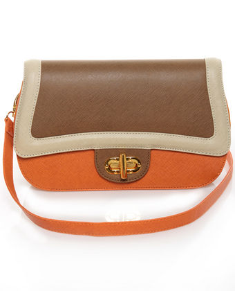 Bird across body bag in pale pink($36) available at Asos.com Chain strap cross body bag in creme and orange($22.80) available at forever 21 Brown and orange bag ($32) available at Lulus.com Zip front bag in cream ($63) available at Asos.com