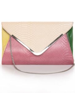 Light on your wallet, heavy on style….here are some more clutches you’ll love. Nothing over $45. Beige & green clutch($17.95) available at H&M stores*online shopping in U.S. coming soon. Peach & cream woven clutch($17.80) available at Forever21. Floral print clutch($16.99) and colorblock blue envelope clutch($16.99)both available at Target. Orange box clutch($45) available at Nordstrom. Mint metal tip envelope clutch($27) available at Asos. Multicolored pink & beige envelope clutch with detachable chain($34) available at Lulus.