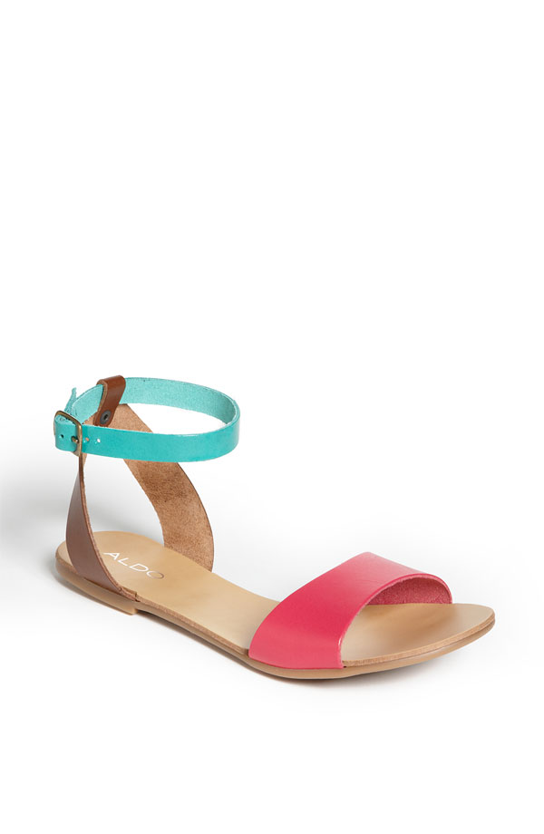 Shop these cute sandals for Spring/Summer. They go with everything from shorts to pants and dresses. If you’re not a heel girl or just want to be comfy and cute, sandals are perfect for your Spring wardrobe and beyond. Black Chloe cutout sandal($550) and pink Valentino bow sandal($295) both available at Saks Fifth Avenue.  Aldo colorblock teal/pink sandal($59.95) and yellow/gold sandal($79.95) both available at Nordstrom.  Coral Steve Madden sandal($69.95) available at Steve Madden. Brown braided sandal($14.99) available at Target.