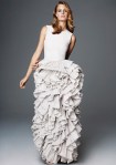 to an elaborate limited edition organza crease plisse’ meringue skirt with organic cotton& silk blend boucle top priced at $299 pictured right