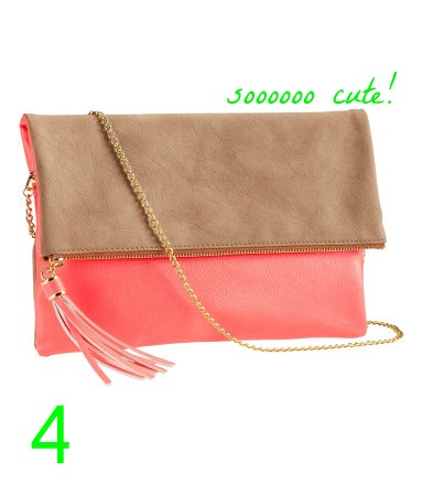 3. Open toed pink sandal(17.95) 4.Camel & coral bag($17.95) both available at H&M stores.