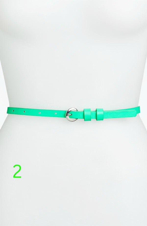1.Titanium look “boyfriend” watch($18) 2. Skinny neon belt($10) both available at Nordstrom.
