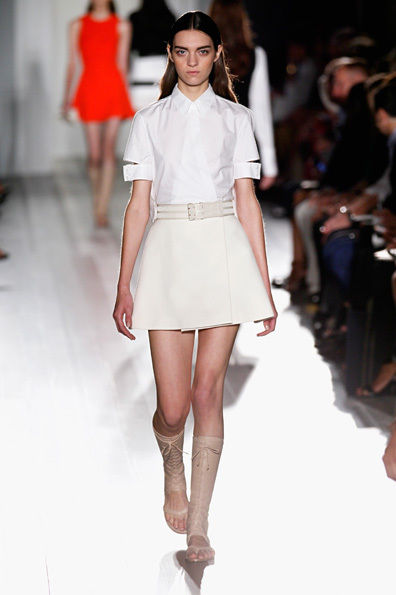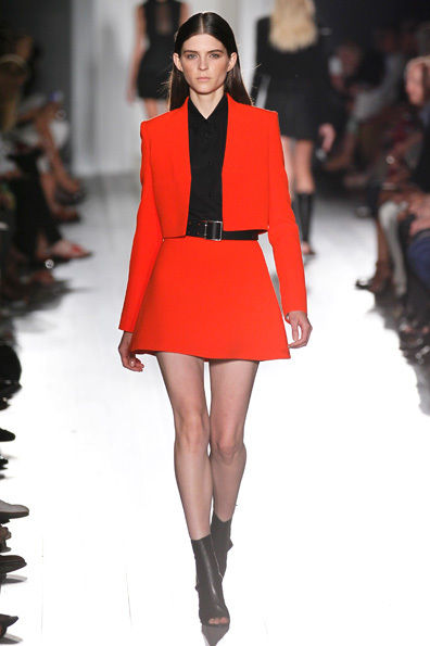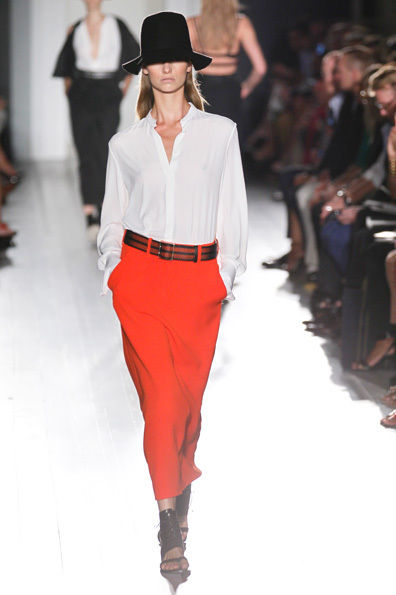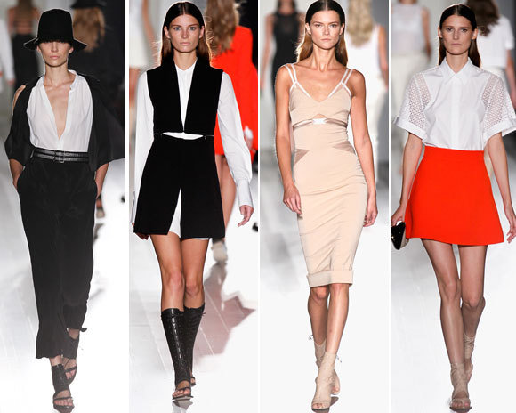 This former spice girl who was laughed at when she first announced her love for design is a now a force to be reckoned with. Her only four year old label is fast becoming the show to watch at fashion week. Beckham’s palette included black, white, beige and punches of a bright orangey/tomato red hue. She remained true to her clean yet sexy aesthetic with her lady like pieces and trademark body-con dresses. This is the best work I’ve seen from Beckham, very nice!