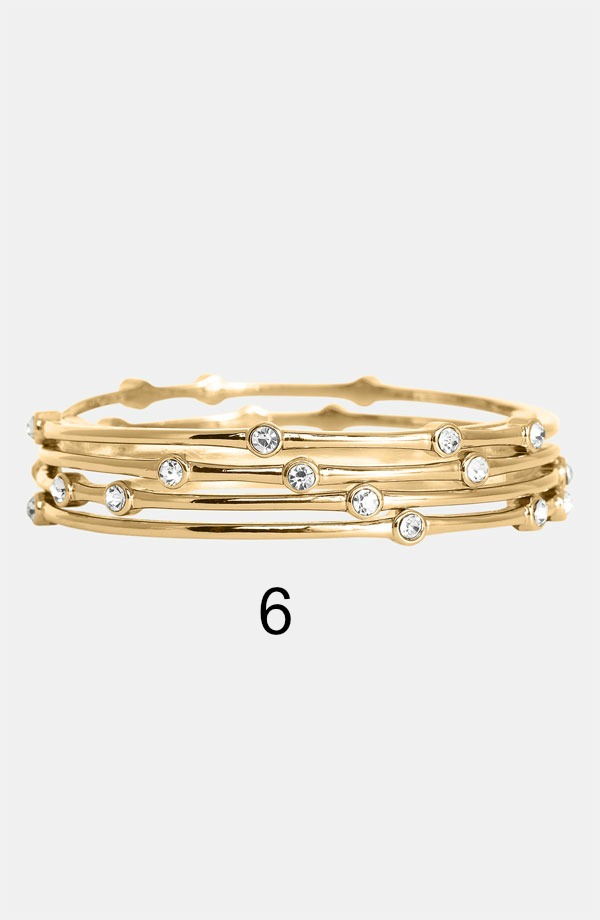 4.iphone wallet case ($16) 5. Studded wallet ($18) 6. Rhinestone bangle set ($140 7. Woven infinity scarf ($18) all available at Nordstrom.