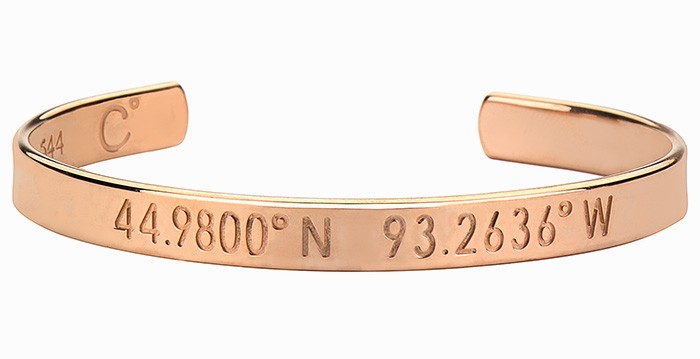 I think I may have found the coolest bracelet EVER! I have always loved industrial, yet feminine jewelry, so I was instantly smitten when I layed eyes on these. Coordinates Collection bracelets and rings are great because they show the latitude and longitude of any place in the world that you choose. You can pick a place where you first met someone, went to school or had a life achievement i.e. graduation, baby, marriage etc. That’s not all……on the inside, you can get a special date engraved and a message as well. These are just so cool and I’m gonna be wearing mine all the time!!!!