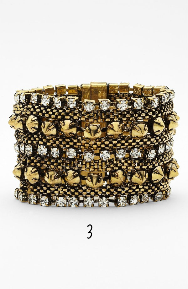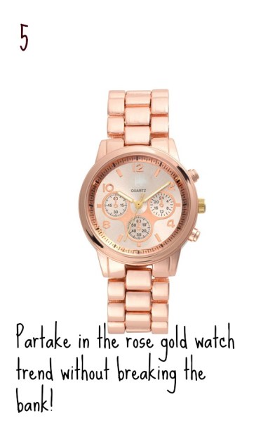 3. Rhinestone & stud bracelet($16) 4. NYX Soft matte lip cream set of 3($12) 5. Rose gold tone watch($18) all available at Nordstrom.