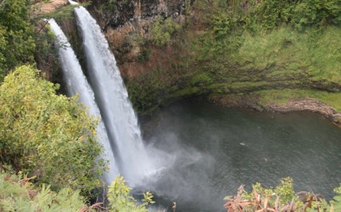 Wailua Falls-(East shore) This is a must see and you don’t even have to hike to it(unless you want to illegally climb over a fence, ignore the signs, and hike down a STEEP cliff hoping that you reach the bottom without dying or getting arrested)! You can just park and walk 20 feet to see the famous twin falls. They are massive and beautiful! There are much longer trails leading down that are guided and will lead to the base of the falls and are much safer than the WILD WAY DOWN!