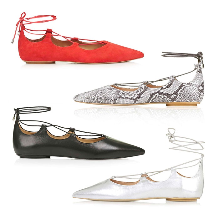 Lace up Flats: Lace up flats are so HOT right now, the comfortable, yet sexy spin on the traditional ballet flat will have you wanting a pair in every color!