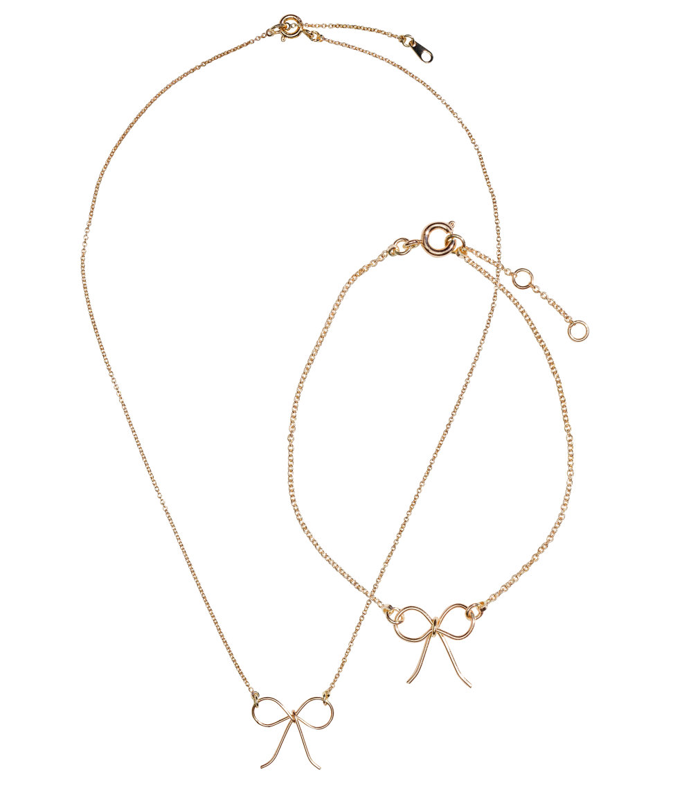 Rose gold tone dainty bow necklace and bracelet set!