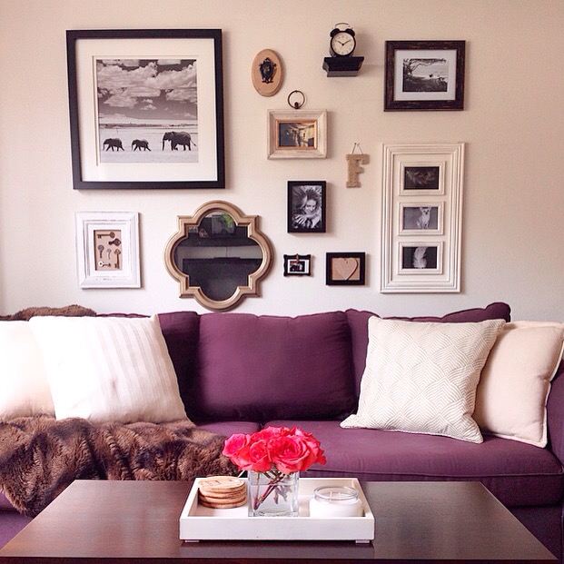 *All in the family: Tie your gallery wall colors in with your surrounding couch, blankets, coffee table, and throw pillows. This keeps everything cohesive within the space.