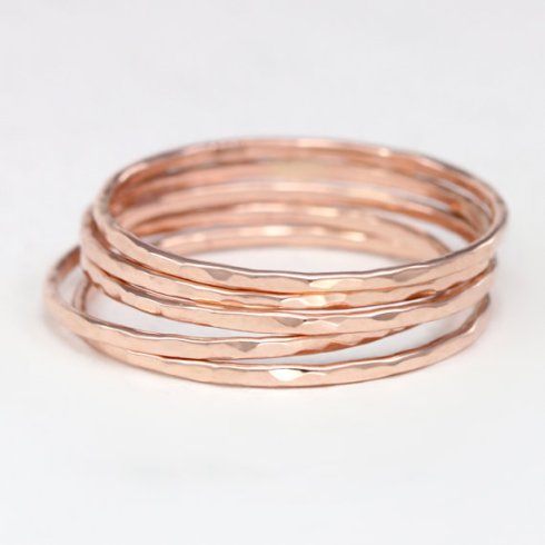 They are available in rose gold filled (budget friendly), solid rose or yellow gold and silver. Julie is the shop owner and she hand makes all of my hammered bands……I recently wanted midi rings made and she made the perfect size for my first knuckle!!!! LOVE HER!