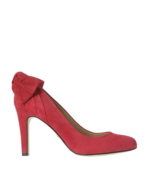 Red suede bow pumps $128 Bold bow on the back with a subtle rounded toe! Cute!