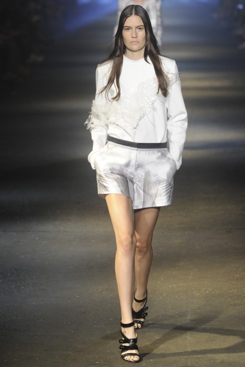 This collection was full of silks, feathers, fitted jackets and embroidered pieces. The palette was black, white and grey with shades of red here and there. The show took place in a steamy warehouse on Pier 59, it was like a futuristic fairytale of sorts.