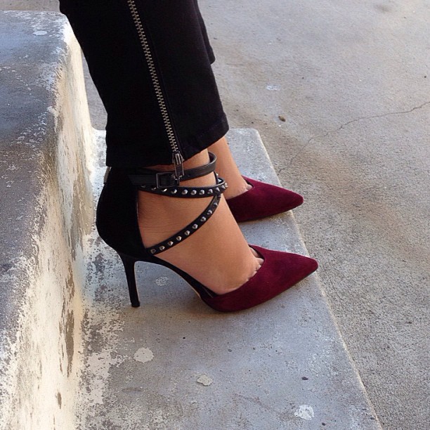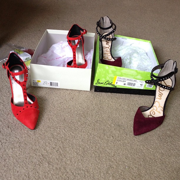 21 JulThe annual Anniversary Sale is in full swing right NOW at Nordstrom stores across the country and online as well ! The sale is held each July and has become legendary among Nordstrom customers nationwide who take advantage of savings on new fall merchandise before the season starts. I look forward to this sale all year-long and my store visit was a total success. I was able to score on baby gift, a couple of really cute rings and a dress but my favorite score of all was these HOT Sam Edelman ‘Darla’ heels. They have a pointed toe with a V cutout to show just enough toe cleavage and have a triple ankle strap with two of the three straps featuring studded detail! I really wanted both colors but with the help of my Facebook and Instagram followers, I opted for the burgundy & black because I already have far too many black heels and thought a little color wouldn’t hurt, and the rich red color is PERFECT for Fall! The heels are available HERE and will go back up to regular price on August 5.
