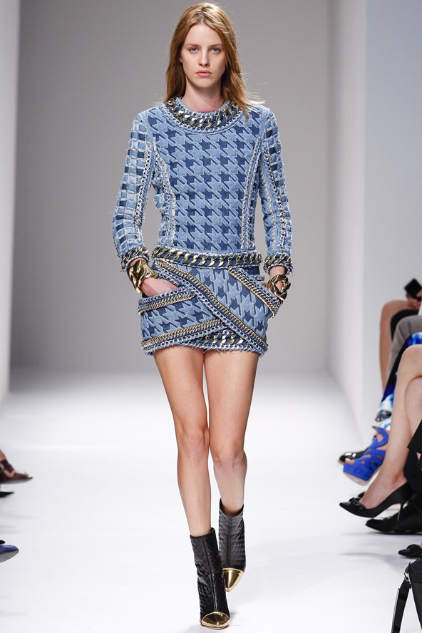Sexy glam and plenty of chain detail, bomber jackets, quilted leather, tweed and denim at the Balmain show, very reminiscent of 90’s Chanel.