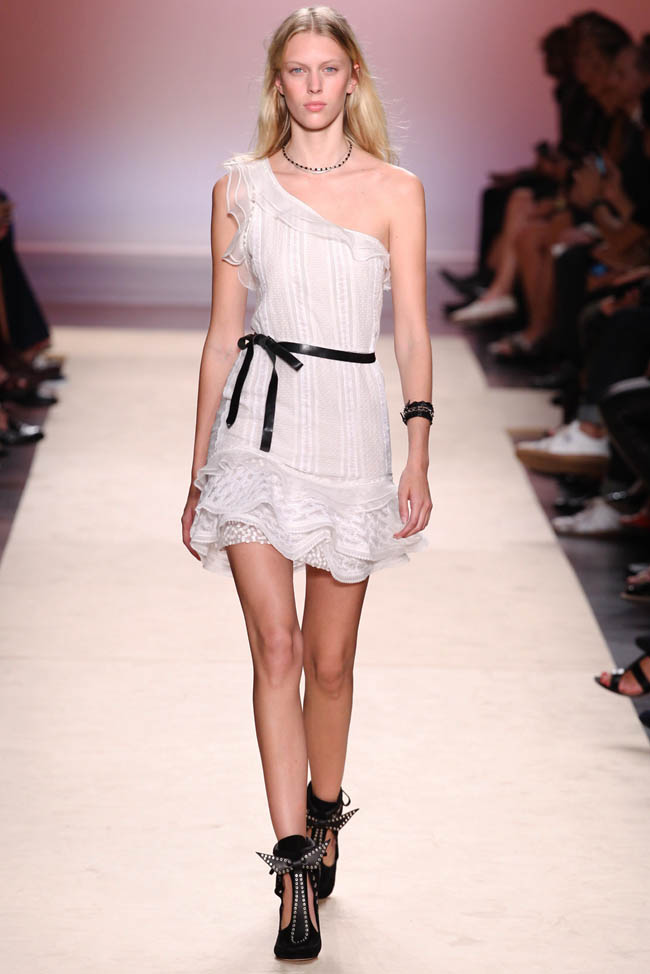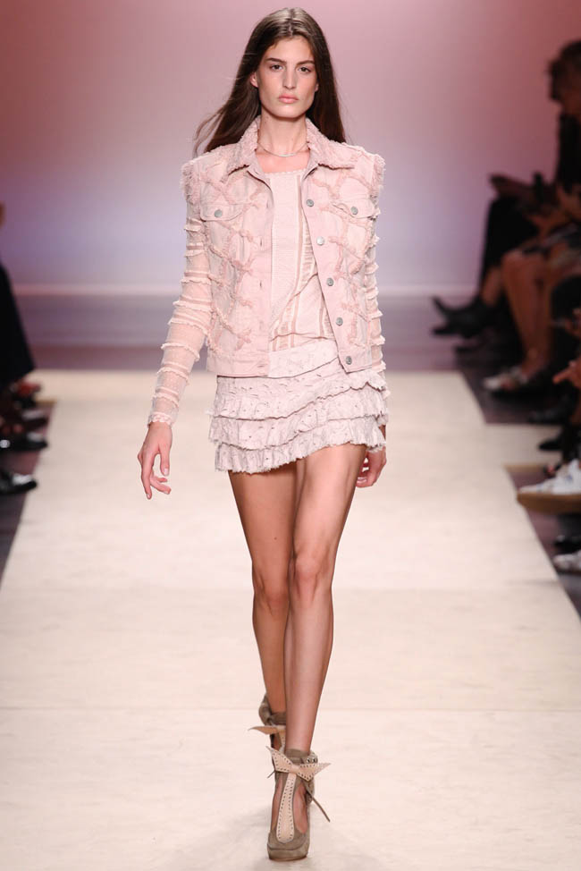 Feminine silhouettes, leather, ruffles and lace at the Isabel Marant show.