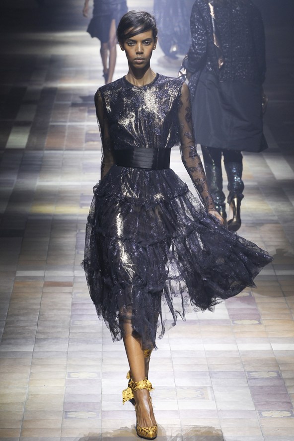 Metallic, shimmer, silk and lame’ at the Lanvin show. Very rock ‘n roll!