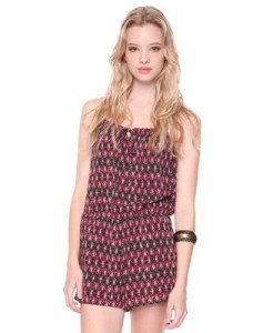 Ikat print romper($9.45), Red multicolor tribal skirt($13.80) and Strapless ikat dress($19.80) all available at Forever21.