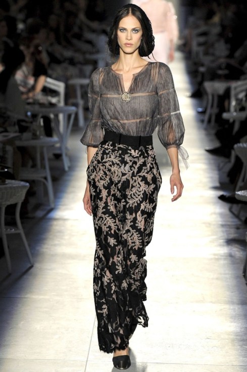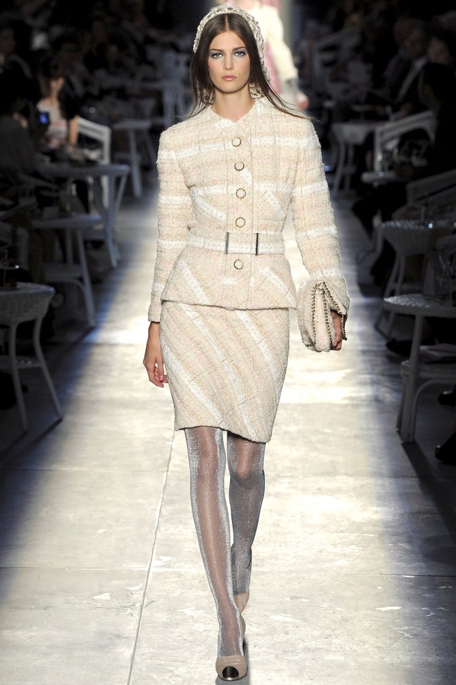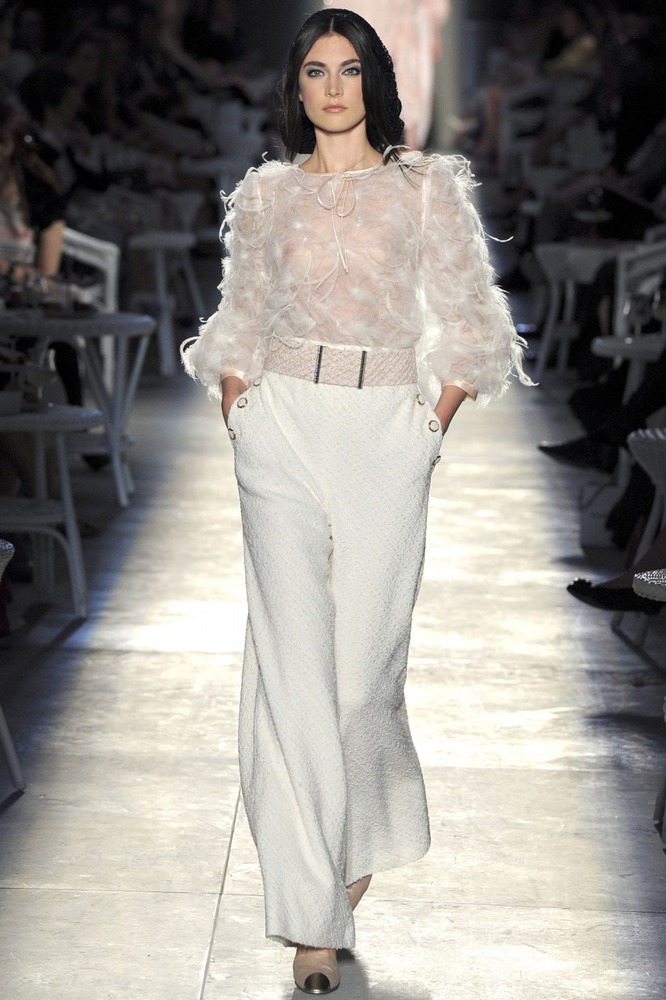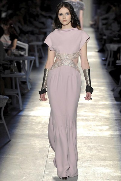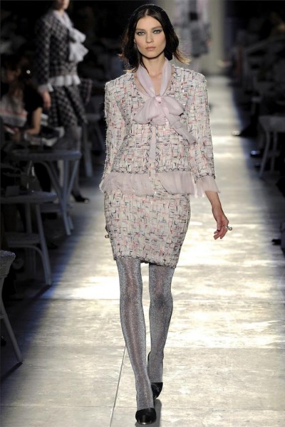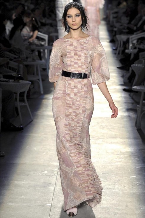Entitled New vintage, Chanel’s Couture F/W 2012-13 show certainly had a retro feel.  The  nostalgic collection included many soft  pinks and greys in addition to some black and creams , very Jackie-O . The french fashion house was sure to include trademark boucle’ jackets and sparkly tweed pieces as well.  Overall, I really loved the femininity of the collection.  Here are some looks from the runway.