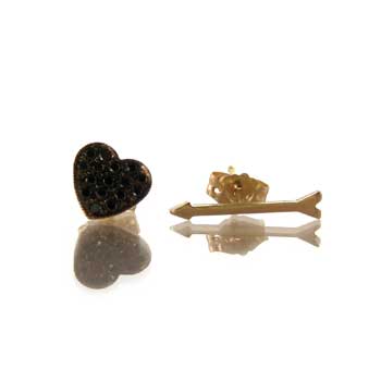 Heart & arrow earrings set in 14k gold, heart set with pave’ black diamonds ($378) and black diamond tiny initial necklace set in 14k gold($356) both available at Zoe Chicco.